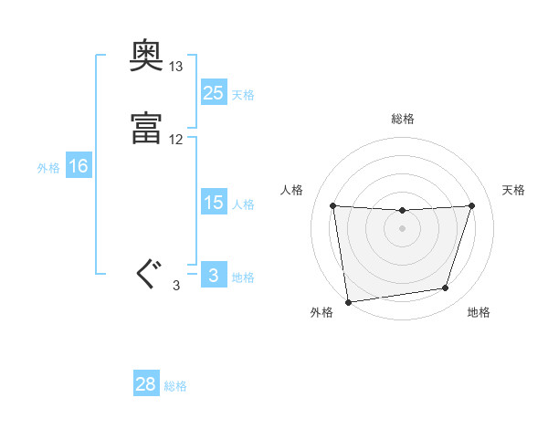 奥富 ぐさんを姓名の画数から五運を鑑定