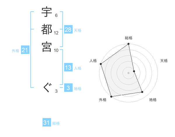宇都宮 ぐさんの総格は31画の5点!
