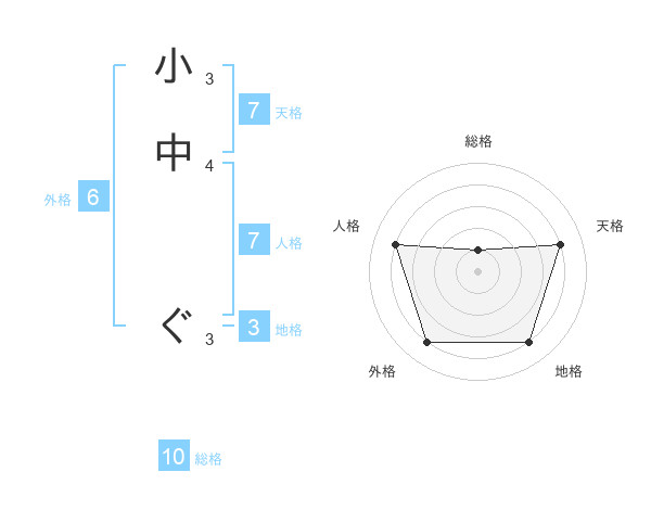 小中 ぐさんの総格は10画の1点!