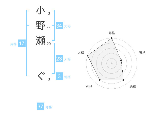 小野瀬 ぐさんを姓名の画数から五運を鑑定