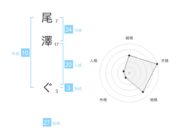 尾澤 ぐさんを姓名の画数から五運を鑑定