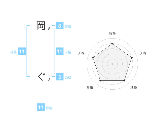 岡 ぐさんの外格は11画の4点!
