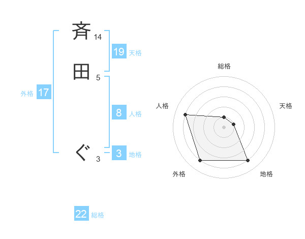 斉田 ぐさんを姓名の画数から五運を鑑定