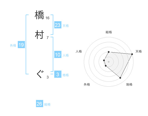 橋村 ぐさんの天格は23画の5点!