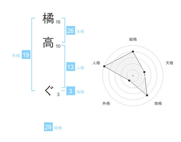 橘高 ぐさんを姓名の画数から五運を鑑定