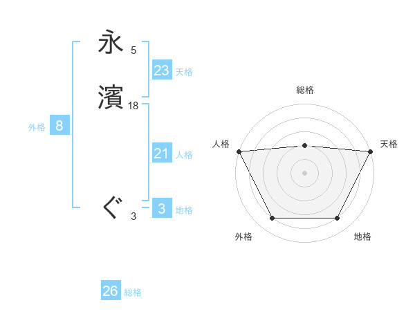 永濱 ぐさんの天格は23画の5点!