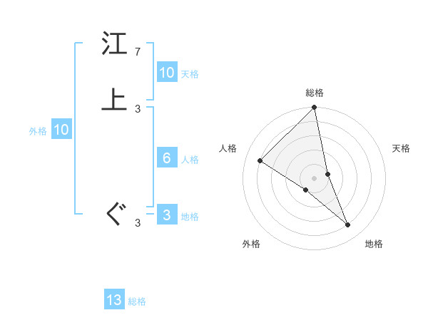 江上 ぐさんの総格は13画の5点!