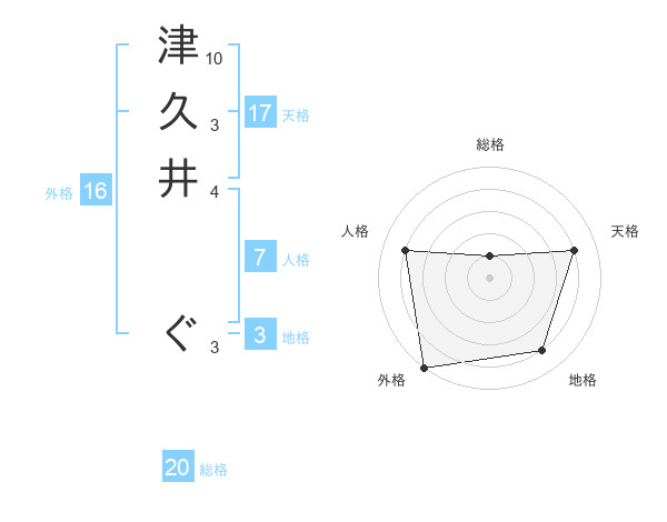津久井 ぐさんを姓名の画数から五運を鑑定