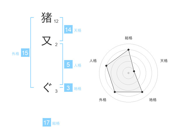 猪又 ぐさんを姓名の画数から五運を鑑定