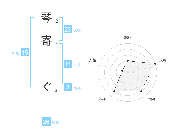 琴寄 ぐさんの外格は15画の4点!