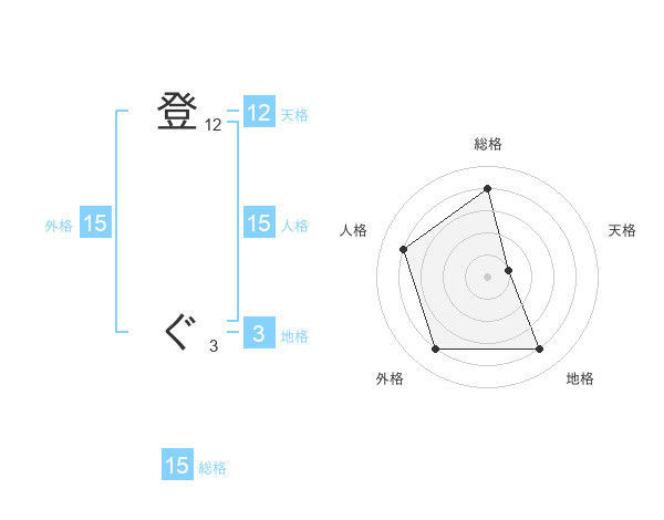 登 ぐさんの外格は15画の4点!