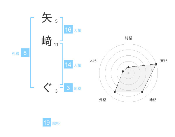 矢﨑 ぐさんの天格は16画の5点!
