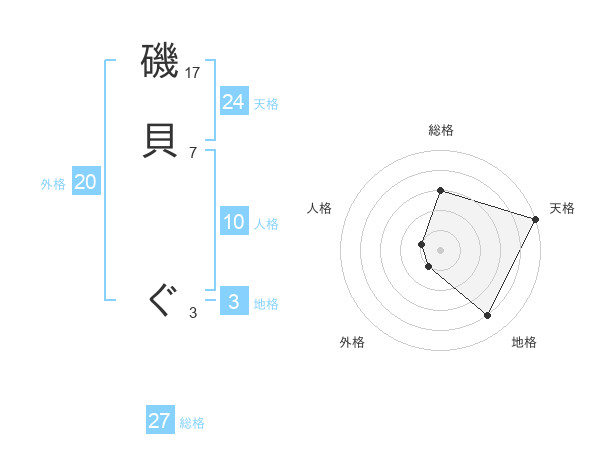 磯貝 ぐさんの天格は24画の5点!