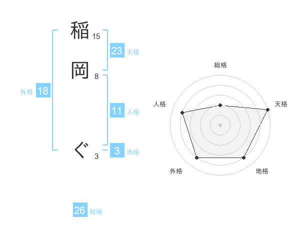 稲岡 ぐさんを姓名の画数から五運を鑑定