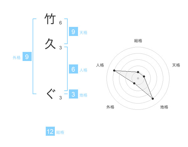 竹久 ぐさんの外格は9画の1点!