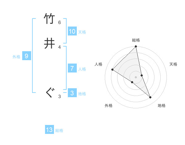 竹井 ぐさんの総格は13画の5点!