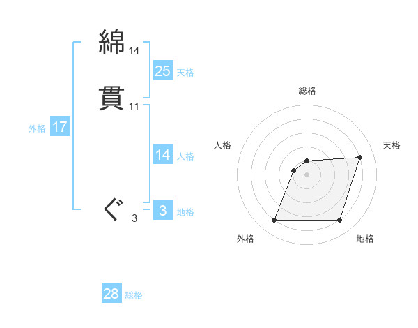 綿貫 ぐさんを姓名の画数から五運を鑑定