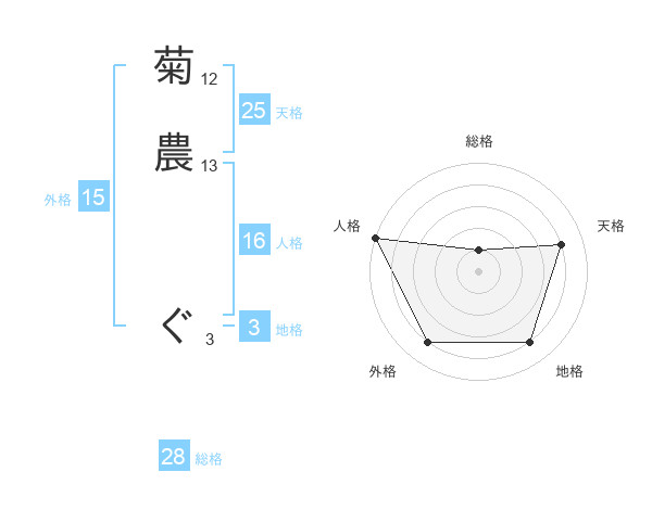 菊農 ぐさんを姓名の画数から五運を鑑定