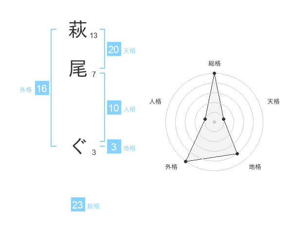 萩尾 ぐさんを姓名の画数から五運を鑑定