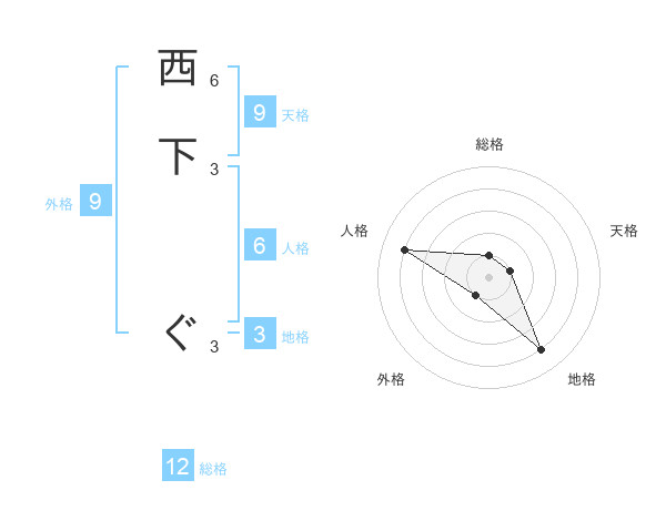 西下 ぐさんの天格は9画の1点!