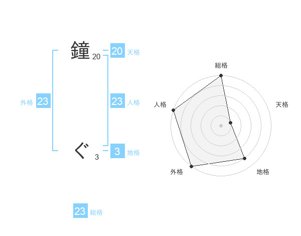 鐘 ぐさんの外格は23画の5点!