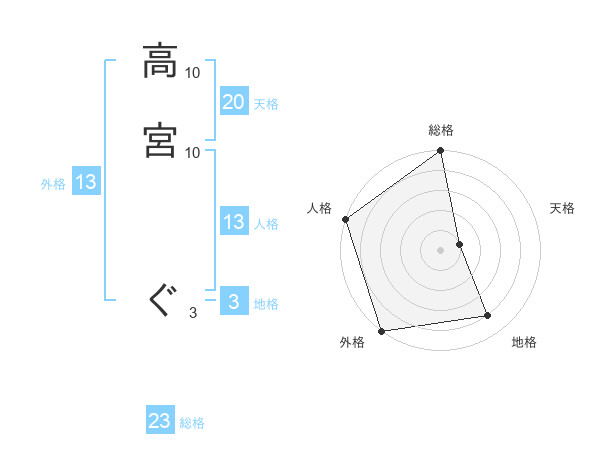 高宮 ぐさんの外格は13画の5点!