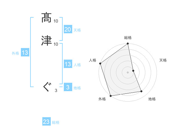 髙津 ぐさんを姓名の画数から五運を鑑定