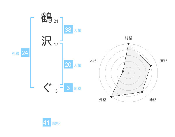 鶴沢 ぐさんの天格は38画の4点!
