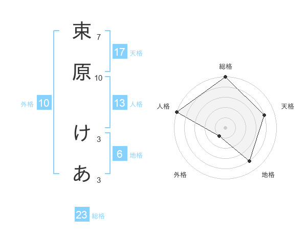束原 けあさんの総格は23画の5点!