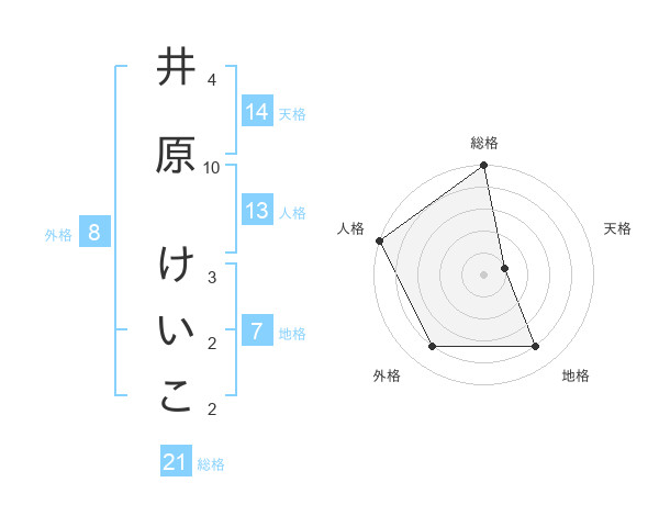 占い結果は姓名判断である以上、良い場合も悪い場合もありますが、決してお名前を誹謗中傷するものでなく、画数の自動計算によって得られたものです。また、本サイトの検索によって得られた鑑定結果で、第三者を誹謗中傷したり名誉を棄損するような行為を禁じます。
