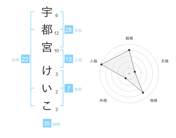 宇都宮 けいこさんの総格は35画の4点!