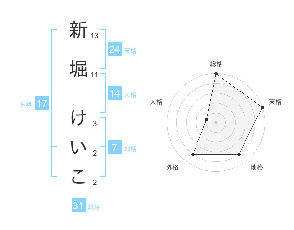 新堀 けいこさんの総格は31画の5点!