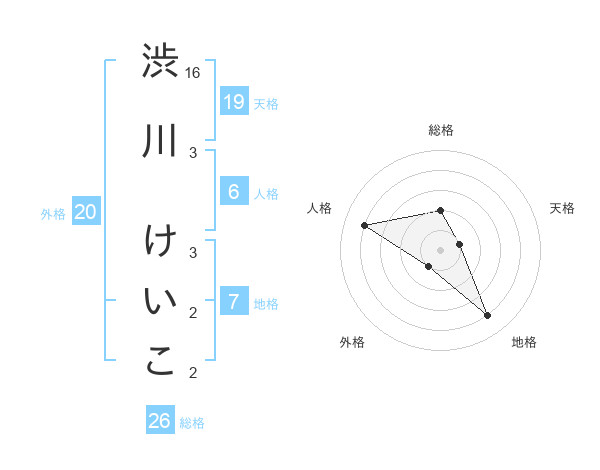 渋川 けいこさんの総格は26画の2点!
