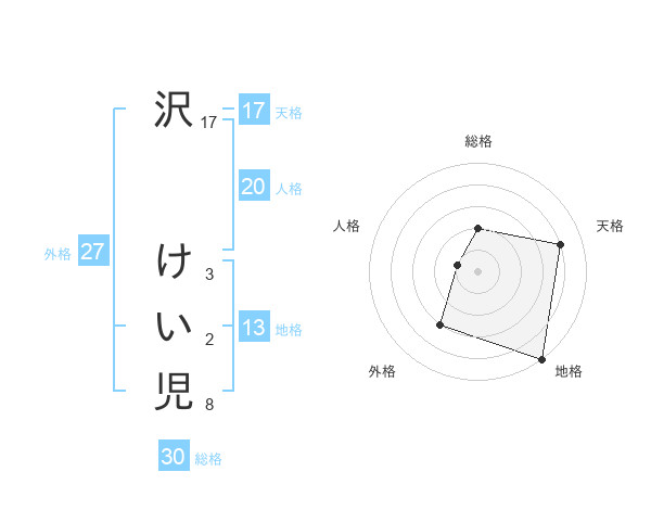 沢 けい児さんの天格は17画の4点!