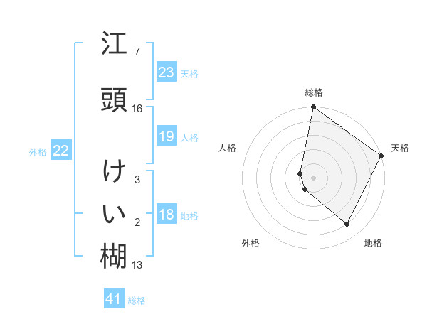江頭 けい楜さんの外格は22画の1点!