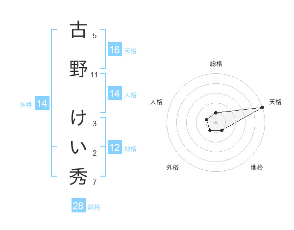 古野 けい秀さんを姓名の画数から五運を鑑定