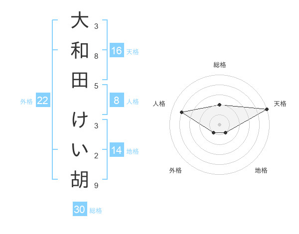 大和田 けい胡さんを姓名の画数から五運を鑑定
