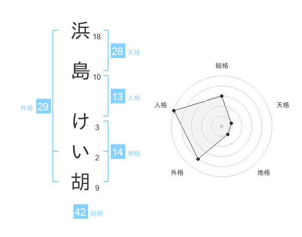 浜島 けい胡さんの総格は42画の3点!