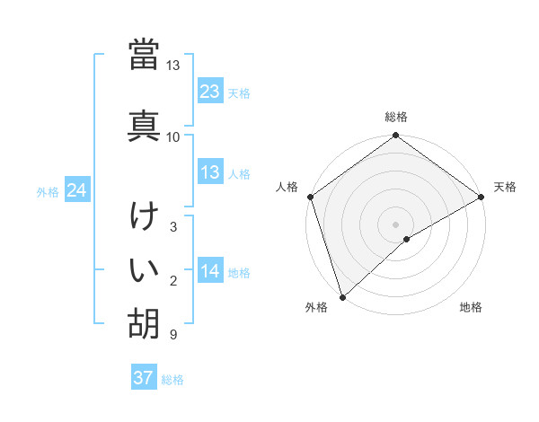當真 けい胡さんを姓名の画数から五運を鑑定