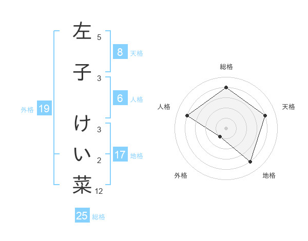 左子 けい菜さんの総格は25画の4点!
