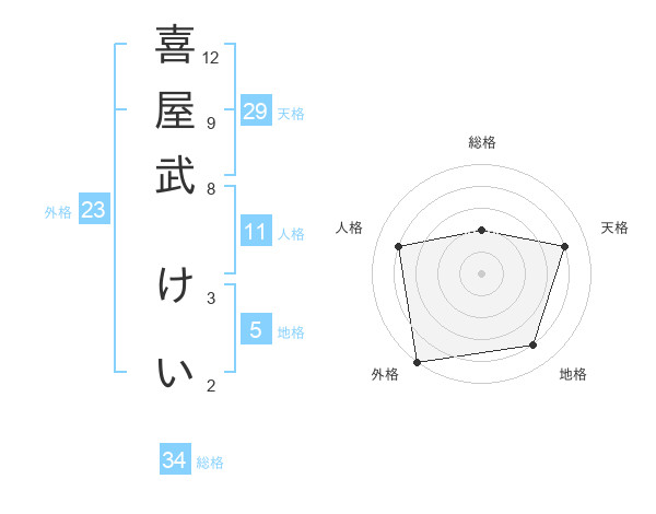 喜屋武 けいさんを姓名の画数から五運を鑑定