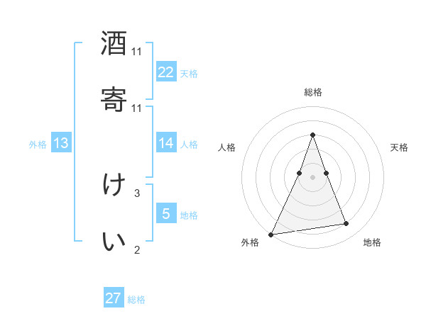 酒寄 けいさんを姓名の画数から五運を鑑定