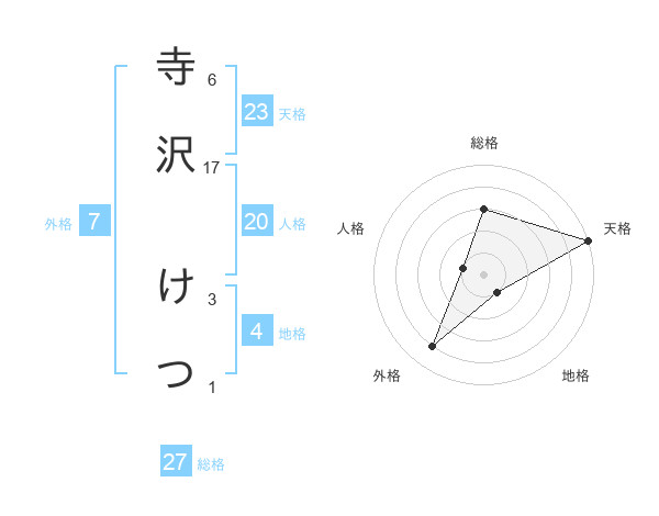寺沢 けつさんを姓名の画数から五運を鑑定