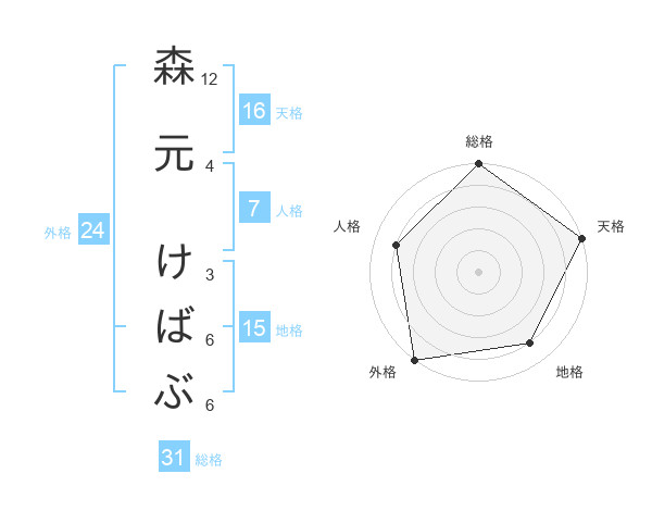 森元 けばぶさんの総格は31画の5点!