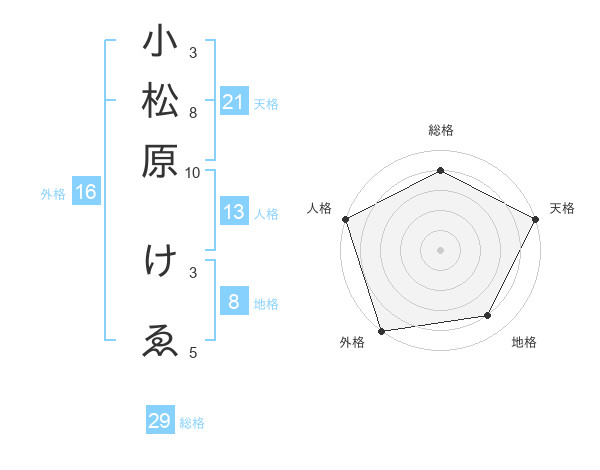 小松原 けゑさんの天格は21画の5点!