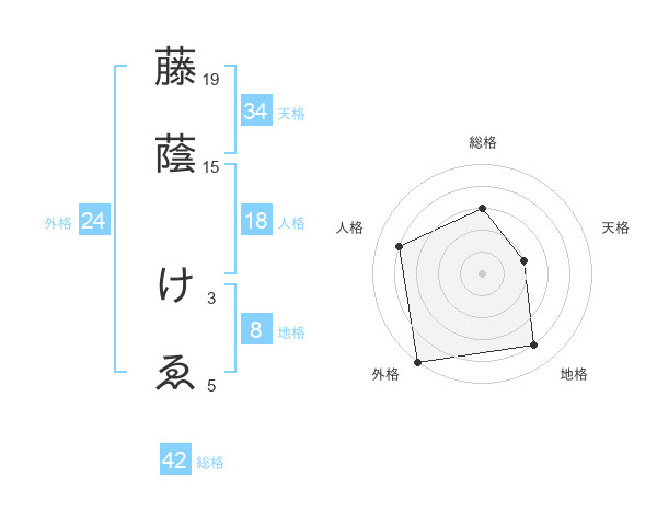 藤蔭 けゑさんの総格は42画の3点!