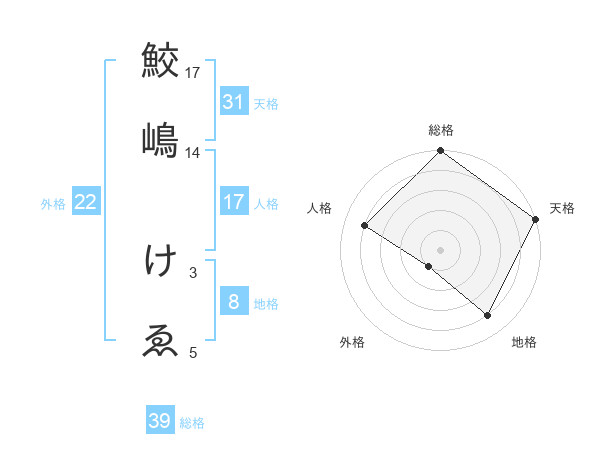鮫嶋 けゑさんの総格は39画の5点!