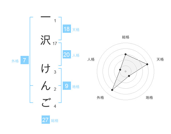 一沢 けんごさんを姓名の画数から五運を鑑定