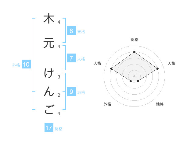 木元 けんごさんの総格は17画の4点!
