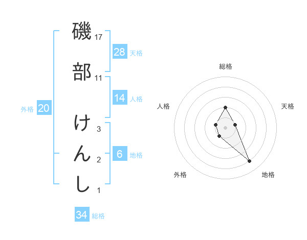 磯部 けんしさんを姓名の画数から五運を鑑定